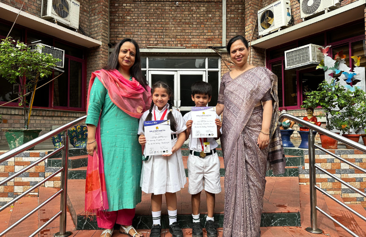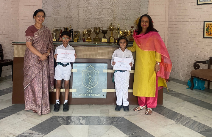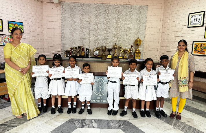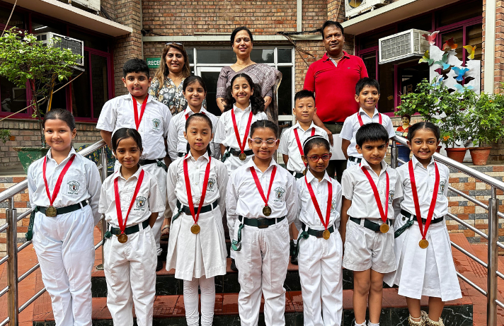 Anvita Thakur 4 A Sehej Bhatia 4D Nandani Tiwari 4F Dyuti 4 Anvi Sharma 5A Raghvendra Mathur 5A Swara Harshan 5C Viaan Jain 5C Siyona agarwal 5D Anushka Neogy 5E Lavanya choudhary 5E Sanav sharma 5E Pragyan Pranav 5E Dev Sinha 5F Pooja 5F" |